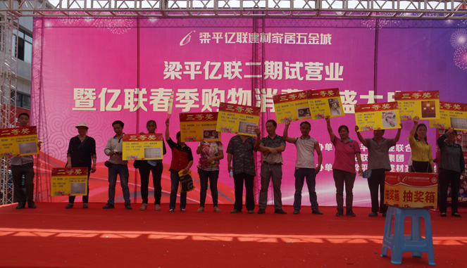 亿联市场有关负责人介绍,为建立成熟的专业市场,特举行“梁平亿联二期市场试营业暨亿联春季购物消费节”活动,多位娱乐明星现场助阵,向外界展示梁平亿联市场的新形象、新面貌,获得外界的进一步认可和支持。活动现场,部分商品1元起拍。一台市场售价1800多元的晾衣杆,从1元起开始叫价,台下观众经过激烈竞争,最后以1000元价格成交。许多商铺为让利顾客,打出特价产品,以优惠价格迎接顾客光临。活动推出购物抽奖环节,凡在亿联市场内单笔消费68元,即可换取抽奖券参加抽奖,抽奖活动将持续到5月16日。