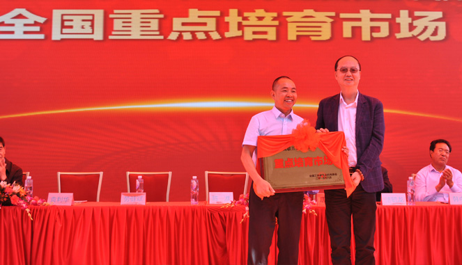 中国建材家居交易市场协会常务副理事长、国务院经济发展研究中心研究员林小平和全国工商联五金机电商会会长劳健斌分别为定西亿联国际商贸城颁发了中国建材家居交易市场协会“全国重点培育市场”牌匾和全国工商联五金机电商会“全国重点培育市场”牌匾。