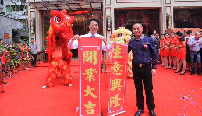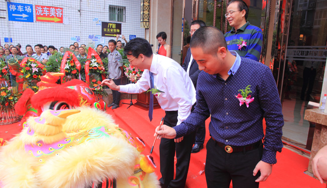 活动最后,集团副总裁夏晔和南江亿联建材家居电商城总经理毛积慧共同为狮子点睛,现场进行了精彩的舞狮表演,宣告南江亿联建材家居电商城市区接待中心正式开放,顿时锣鼓喧天、礼炮齐鸣,售楼部大门敞开,迎接南江亿联建材家居电商城第一批客人的到来。