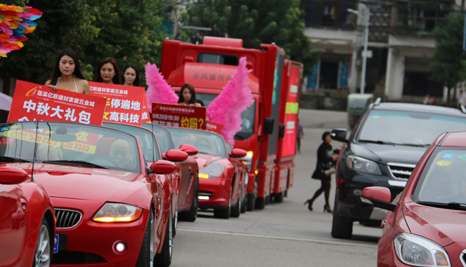 当天盛况空前,可谓万人空巷。大红的空飘装饰璀璨醒目、豪车美女全城巡游等,为亿联建材家居五金城全城造势。活动现场人山人海,引爆蓬溪,仅9月26日一天,营销中心到场的客户就超过20000人。早上8点不到,位于普安大道与广福路交汇处的蓬溪亿联建材五金城营销中心就已聚集了大批蓬溪市民及投资客,现场人潮涌动,将亿联营销中心里三层外三层围得水泄不通,他们迫不及待地想目睹荣膺中国专业市场第一品牌的蓬溪亿联建材五金城的“芳容”。