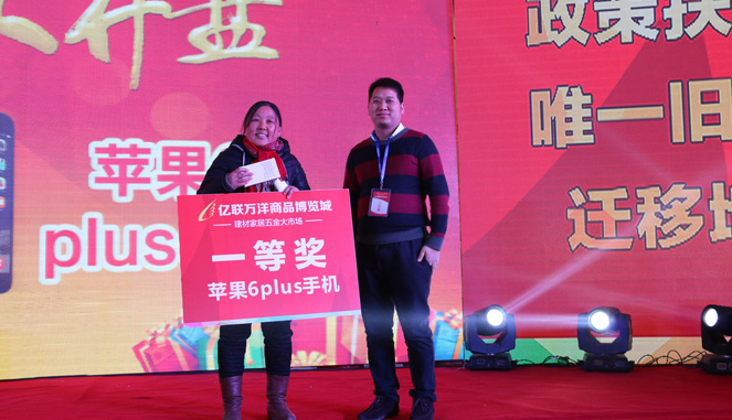 为感谢广大客户鼎力支持,亿联万洋商品博览城特拿出近百万元购铺基金进行狂欢抽奖,巨额大奖让现场喜气洋洋、高潮迭起。上午选铺结束后,又举行了幸运大抽奖,奖品有IPhone 6、IPad、电动车、冬被等,让所有到场客户惊喜连连。当天成功认购商铺,并在约定的时间内签订《商品房买卖合同》的客户,还可以参加1月10日业主大抽奖,有机会赢取价值20万元的大众汽车一台。