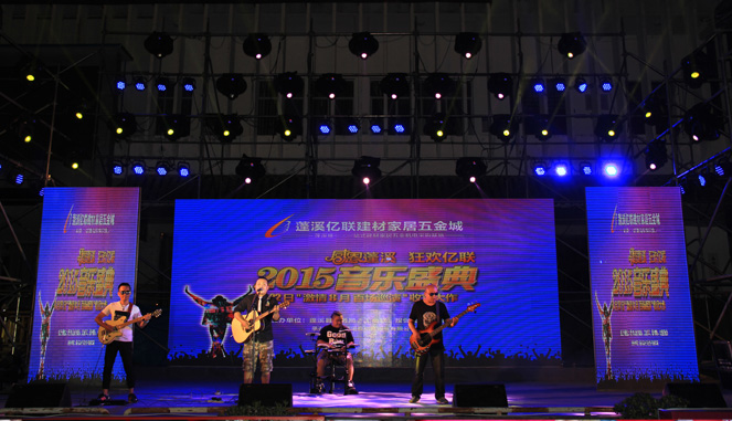 8月22日晚上8:00,蓬溪亿联建材家居五金城2015音乐盛典在奎阁广场正式拉开了帷幕。2015音乐盛典是乡镇巡演百场之后的收官之作,为观众呈上了一场精彩纷呈的视觉与听觉的盛宴,活动吸引近万人次到场。