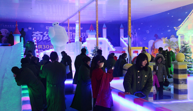 开放日当天,冰雕展内人头攒动井然有序,参观后纷纷表示不虚此行大呼过瘾,创下了参观人数达2000余人的记录!冰雕迷宫内光影闪烁、晶莹剔透,为游客展开探索之旅的同时更可欣赏沿途美丽景致。真正的冰雪滑梯,不论大人小孩都流连忘返;甚至穿着短裤,忍受的冰冻的刺爽,一遍又一遍体验着别样速度与冰冷的碰撞;怪兽大学的小怪兽们也跑出来了,众多大小朋友都抓住这千载难逢的“逃课”机会,争先与他们合影;艾莎公主、多啦A梦、小黄人、大白,也都不再是童话里的了;还有晶莹剔透的“埃菲尔铁塔”、叶县明代五品县衙以及中原大佛都活灵活现地出现在了本次冰雕展中……