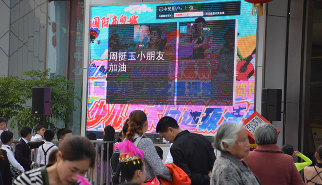 在紧张的选拔比赛期间,为了缓解现场气氛,活动举办方还准备了好玩的微信上墙活动,为自己喜欢的小朋友投票加油。同时,亿联商贸城还向大家开放游乐设施,为参加比赛的小选手们加油打气,为来到活动现场的小朋友们送上童年的欢乐。