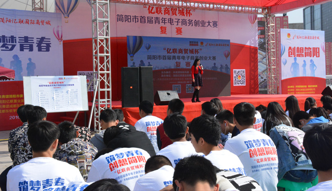 3月30日,由共青团简阳市委、市商务局主办,简阳亿联国际商贸城承办的“亿联商贸城杯”简阳首届青年电子商务创业大赛复赛,在简阳亿联商贸城中心广场如火如荼的举行。
