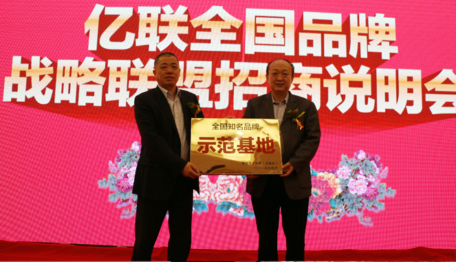 中共菏泽市委统战部副部长、工商联党组书记王宝军代表菏泽市工商联(总商会)授予亿联世贸中心《全国知名品牌示范基地》的荣誉称号。
