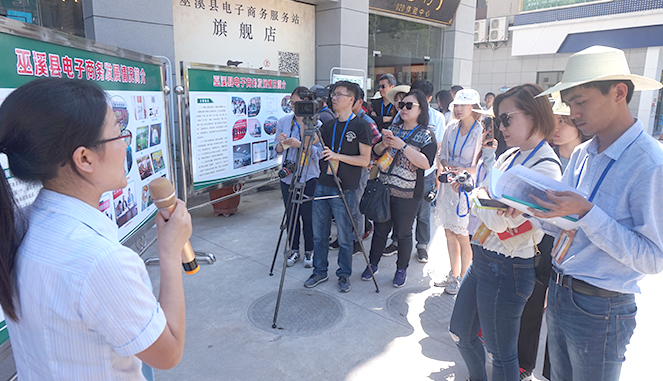 当天下午,参访团一行到达巫溪亿联建材家居五金城,重点考察了巫溪县电商物流园区。在听取巫溪县电商发展及建设情况介绍后,实地参观并访问了电商物流园区内的“秦巴特产020体验中心”、“逍遥巫溪淘宝线下体验店”及“快递一条街”。