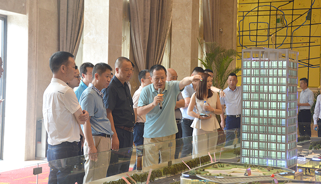 在亿联世贸营销中心,代表团观看了公司宣传片,听取了项目整体进展情况介绍。随后,代表团实地参观考察了生态智慧小镇和亿联时代奥城项目。