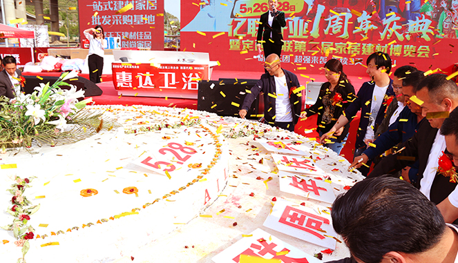 5月28日下午5时28分,在这个令人难忘的特殊时间点,定西亿联国际商贸城的优秀业主和商户代表们共同切开5.28米高超级大蛋糕,共同见证亿联国际商贸城开业一年来的荣耀与成绩。108名幸运客户共享百万聚宝蛋糕,翡翠玉镯、白玉镯、品牌手表、金条等终极大奖纷纷出炉,全场嗨翻。(赵艳琴)