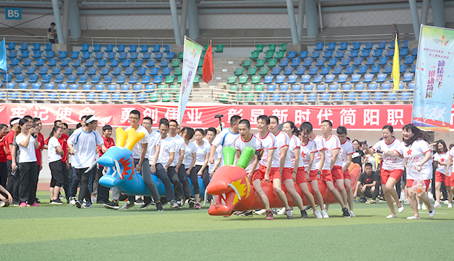 5月3日,为庆祝“五一”国际劳动节,营造健康、文明、团结的社会氛围,激发职工干事创业激情,简阳亿联国际商贸城派代表积极参加“励精腾飞、悦动简阳”简阳市2018年庆“五一”职工趣味运动会。来自简城街道办、市委统战部、市委办、市教育局、市国土局、简阳亿联国际商贸城等39支代表队共2000余名职工参加了本次运动会。