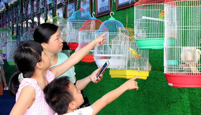 北流亿联精心展出了百鸟之王蓝孔雀、世界著名观赏珍禽黑天鹅;还有多种名贵鹦鹉:白旋风鹦鹉、迷你鹦鹉、彩虹鹦鹉、牡丹鹦鹉、虎皮鹦鹉;上百种罕见珍稀鸟类:画眉、金丝雀、七彩文鸟、芙蓉、黄雀、珊瑚鸟、斑鸠鸟、百灵鸟、绣眼、十姐妹、黄珍珠、白文鸟……平时很难见到的珍稀鸟类,装点了北流亿联百鸟蝴蝶展。或神秘、或高贵、或美艳、或可爱的身影,不断出现在你眼前,一种与稀有生命近距离接触的兴奋散逸开来,一种难以言表的幸福在鸟语中传递。亿联活动再次让大家大开眼界、一饱眼福,在这个寓教于乐的活动中,无疑是给孩子们上了一场最为生动的自然课堂。