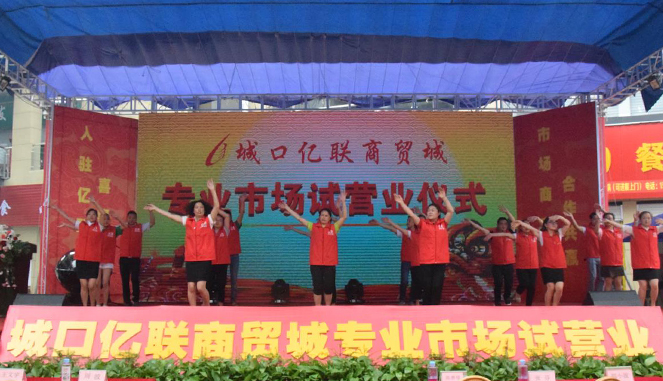 6月28日,鼓乐齐鸣,彩旗招展,城口亿联商贸城专业市场试营业仪式隆重举行。城口县委常委周波,县人大副主任陈善珍,县政府副县长王文宇,县政协副主席张芬,城口县40多个机关部门单位、乡镇街道、企业、协会的嘉宾朋友,以及城口亿联商贸城的业主、商家、社会各界朋友共计800多人出席试营业仪式。