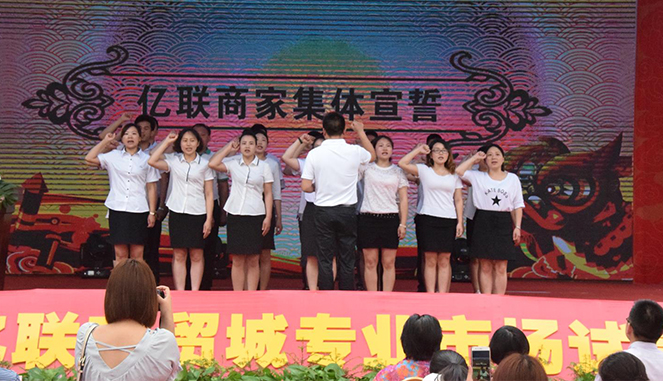 试营业仪式上,市场内40多个品牌的商家就诚信经营、合法经营、售后服务等进行了宣誓。(陶科羽)