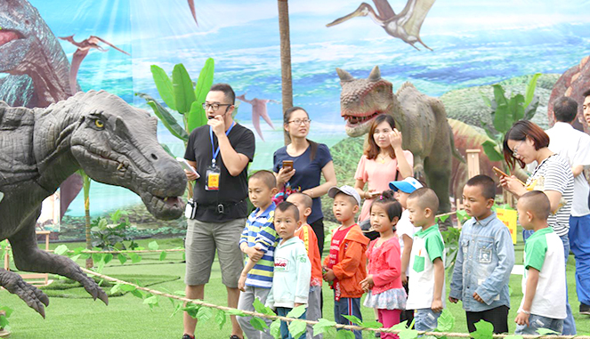 此次恐龙展投入巨资,不仅成功重现了恢弘壮阔的史前文化,还别有匠心地设置了科普元素,力争让所有人都能充分感受侏罗纪的无穷魅力。而在费尽心力之后,通渭亿联终于成功打造出一个可以假乱真的恐龙王国。