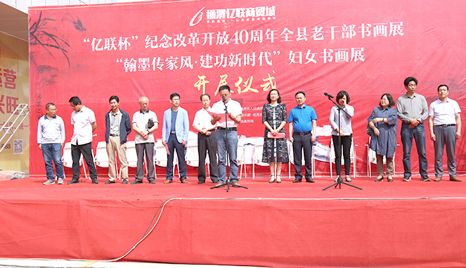 继6月22日通渭县书画展成功举办第一场书画展后,7月12日,由中共通渭县委、通渭县人民政府主办;通渭县文广局、通渭县委老干部、通渭县教体局、通渭县妇联、通渭县总工会、通渭县机关工委、通渭县美术馆、通渭县书画院承办,由通渭亿联商贸城独家协办的通渭县“亿联杯”书画系列展之第二场书画展——“亿联杯”纪念改革开放40周年全县老干部书画展、“翰墨传家风·建功新时代”妇女书画展在通渭亿联商贸城招商销售中心隆重开展。