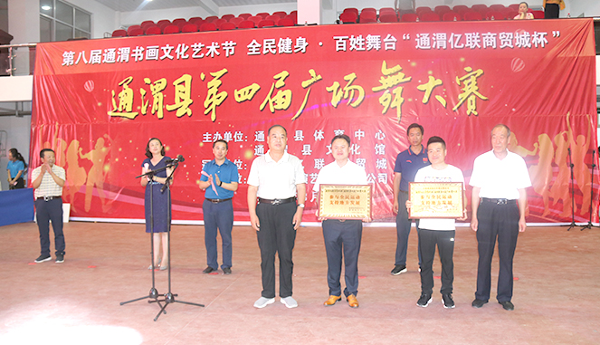 开幕仪式上县领导为本次广场舞大赛的冠名单位——通渭亿联商贸城赠送了牌匾,以感谢通渭亿联商贸城参与全民运动,支持地方发展。