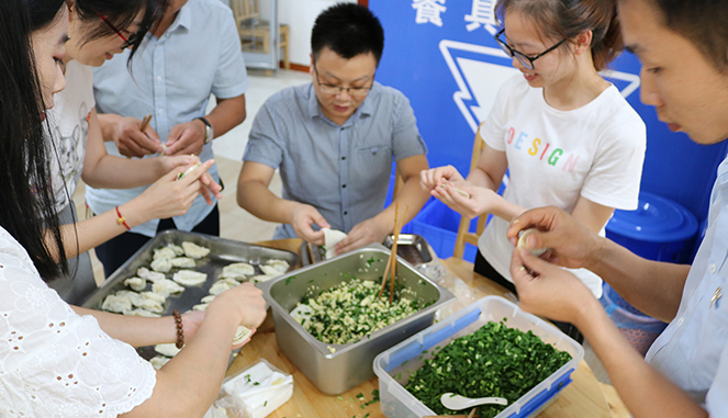 为了丰富智慧小镇全体员工饮食文化生活,促进大家的交流与沟通,8月21日下午,智慧小镇在员工餐厅举办了包饺子大赛,让大家在动手中共创和谐,在和谐中品味欢乐,在欢乐中分享美食。