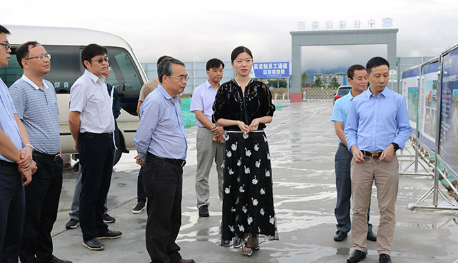刘剑一行来到智慧小镇智能制造项目工业一期施工现场,查看项目施工进度,并详细了解了智能制造项目的产业范围和发展规划,胡维维就智慧小镇智能制造、电商物流、智慧生活三大板块的整体规划向督导考察团领导们进行了详细汇报。
