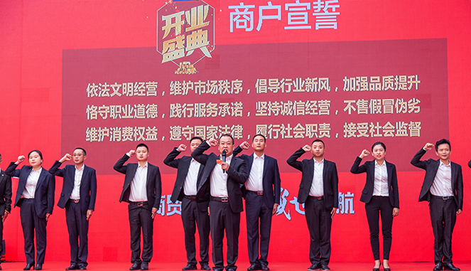 南江欧派橱柜衣柜总经理卢浩代表亿联入驻商户在仪式上发言,他说到非常感激能够来到这样一个高起点的发展平台,亿联的专业运营与管理,让商家十分省心与放心,亿联商家也必定为消费者创建一个诚信交易的购物环境。
