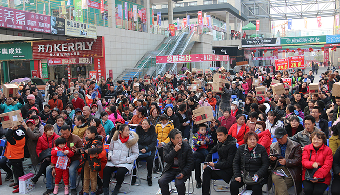 活动还未开始,现场就已人头攒动。金蛋区早早的排起长龙、热闹非凡;舞台区座无虚席,整个市场到处都“挤”满了人!伴随着欢乐的现场互动,气氛异常火爆,下定奖、联单奖让消费者惊喜不断,终极大抽奖更是让消费者不虚此行,纷纷带着满满的“心意”回家。