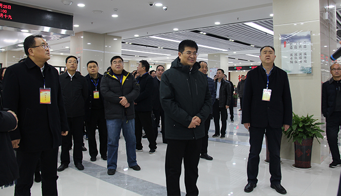 参会人员在叶县县长徐延杰、常务副县长李鹏鹏的陪同下参观了位于叶县亿联建材家居五金城刚启用的叶县人力资源社会保障服务大厅,听取了相关领导对就业创业扶贫工作成果的汇报。