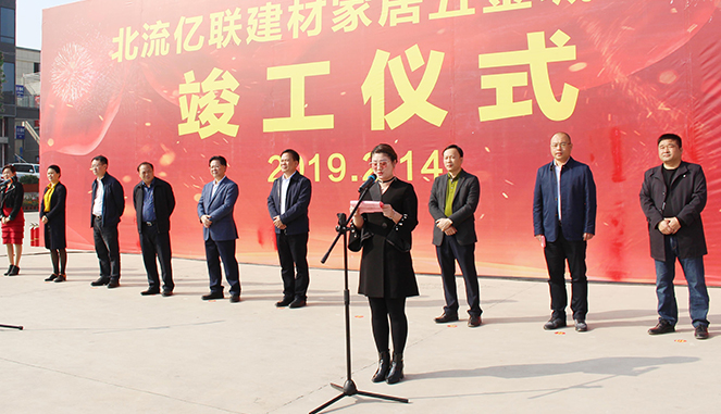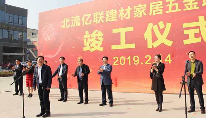 仪式由北流市副市长高巍主持,市委副书记陈基林发表讲话,市人大主任梁小平宣布北流亿联建材家居五金城竣工。