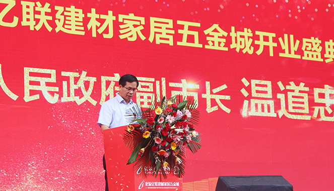 开业盛典上,副市长温道忠发表致辞并宣布市场正式开业。温道忠强调,北流市委、市政府高度关注和支持这座市场的开发建设和运营培育,亿联不负众望,以极快的建设速度建成了这座一站式购物基地。他点赞亿联所取得的各项成绩,对亿联当前的美好开局表示祝贺,对亿联未来在北流继续发挥各项经济社会效益充满期待。