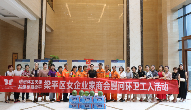 为感谢工作在一线的环卫工人为梁平创造了干净整洁的城市环境,7月23日,梁平区女企业家商会联合梁平智慧小镇开展了“感恩环卫天使 共建美丽梁平”慰问环卫工人活动,为他们送去清凉和祝福。