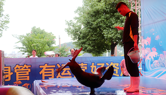 海狮表演是每场演出当之无愧的重头戏。单手倒立、鼻子顶球、跃起跳圈、陆地华尔兹、水中芭蕾、转呼啦圈,模仿鲨鱼、海豹、海豚等表演惹得台下欢呼一片、惊喜不断。东安亿联国际商贸城让大家在家门口近距离体验了海洋馆的乐趣。