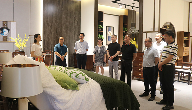 考察团一行来到天荣家居体验馆,了解智慧小镇项目发展规划、线下产业与线上电商融合发展模式,查看家居产品种类和款式,体验智能化家居在生活中的应用,并参观天荣家居生产车间,了解智能家居生产设备和家具产品生产流程,了解家具生产情况和销售情况 。