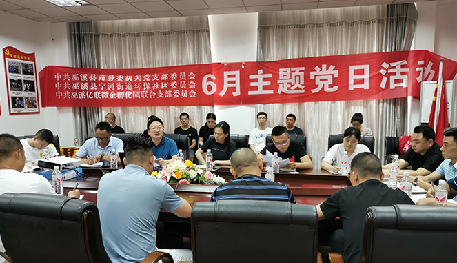 为了进一步加强政企联系,把文明创建活动引向深入,同时,也为了深入践行“不忘初心 牢记使命”主题教育。6月23日下午,中共巫溪县商务委员会机关党支部委员会、中共巫溪县宁河街道环保社区委员会、中共巫溪县亿联微企孵化园联合支部委员会,在巫溪亿联党员活动室共同开展了“情满端午,走访送温暖 ”6月主题党日活动。