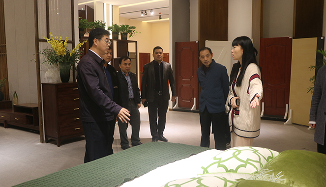 徐勇副区长一行来到天荣家居体验馆,了解智慧小镇项目发展规划、线下产业与线上电商融合发展模式,查看家居产品种类和款式,体验智能化家居在生活中的应用。在天荣家居生产车间,参观智能家居生产设备和家具产品生产流程,了解家具生产情况和销售情况。
