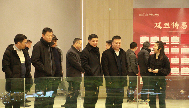 白洪楞一行来到蛟龙出海游客中心,参观巨型沙盘和项目宣传片,听取并了解华东大峡谷项目整体布局规划和建设进度,随后登上星光大道,俯瞰华东大峡谷项目全貌。