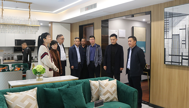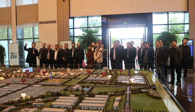 考察团一行来到智慧小镇体验示范区,查看智慧小镇项目沙盘、智慧小镇·云集洋房实地样板区,了解了项目的地理位置、整体规划、建设进度。