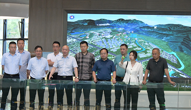马辉书记一行先来到蛟龙出海展厅,参观了巨型沙盘和样板房,听取项目的总体规划和各子项目介绍,随后观看了项目宣传片,身临其境地感受了华东大峡谷项目的神奇壮丽。