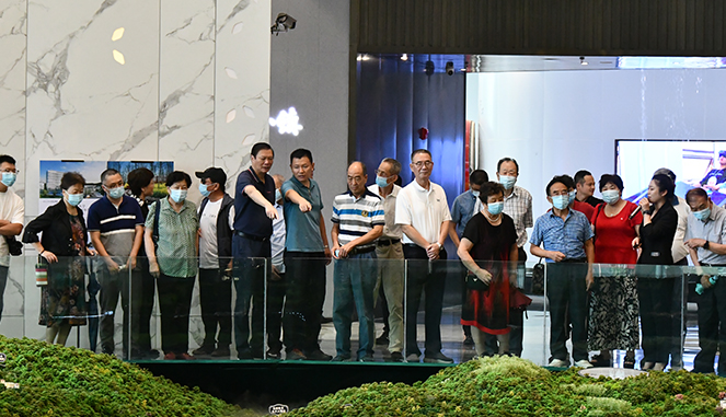 考察团在项目沙盘前专注听取了详细的项目介绍并观看了项目宣传片,对项目规划及推进情况进行了全面而深入的了解。