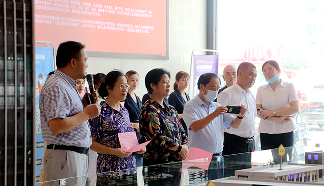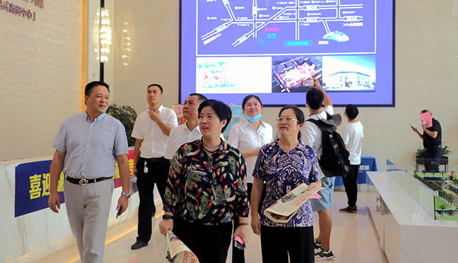 郑永敏向调研组一行汇报了集团概况和东安项目的发展情况。他表示,亿联自进驻东安以来,感受到了最优的营商环境、最全的政策支持。东安县委、县政府高度重视项目的安全快速建设,成立项目指挥部,县领导亲自担任指挥长;开创性开展“一次性盖章汇”,极高优化了项目的办证流程和开发进程;高度重视项目的建设与运营,为项目争取相关扶持政策。项目建设十分顺利,招商运营稳步推进,自2020年5月开工以来,至今主体工程已基本完工,预招商已完成近80%,争取年底竣工交付和商家入驻试营业。