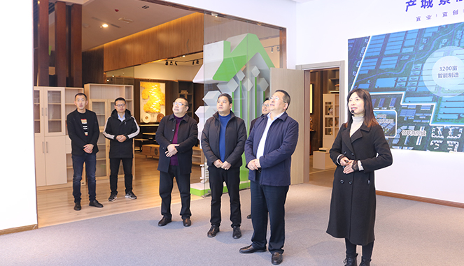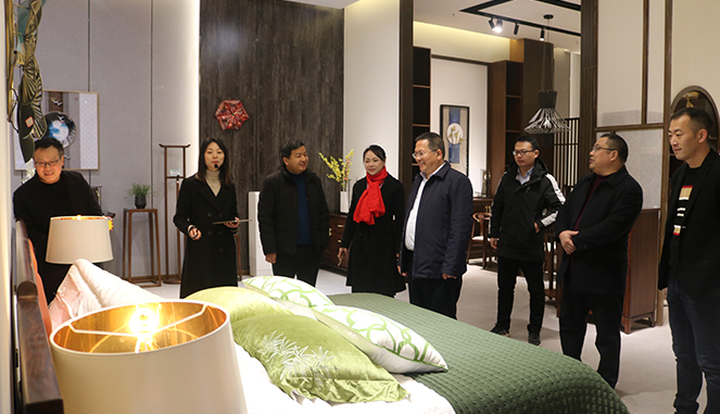 田国华一行来到天荣家居体验馆,参观项目规划展厅,了解智慧小镇的发展规划、线下产业与线上电商融合发展模式,查看家具产品种类和款式,体验智能家居在生活的应用。