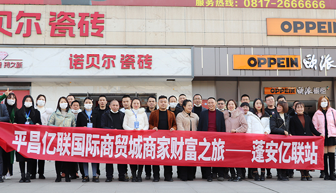 在蓬安,考察团一行受到了蓬安亿联国际商贸城总经理夏守安及项目相关领导的热情接待。为了让考察团一行更好地了解蓬安亿联项目及市场运营情况,夏守安特地为大家组织了一场座谈会,并邀请了马可波罗、帝王华帝、飞宇门窗等入驻蓬安亿联经营的部分品牌商家,共同交流分享经验。会上,夏守安全方位介绍了蓬安亿联的基本情况,着重强调了项目的规模、市场辐射区域、市场经营策略及亿联的统一管理和规划等特有的优势,市场的集聚效应和辐射效应得到了很好的体验。他表示,在亿联二十多年的专业市场运营经验之上,叠加平昌亿联独有的多重优势,平昌亿联定将成为川东北区域的标杆项目!
