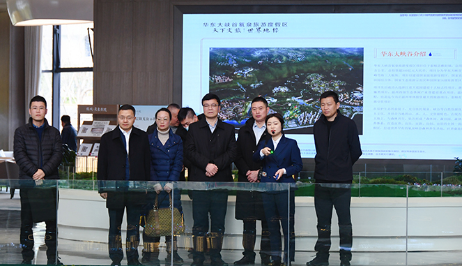 1月13日,温州市科协党组书记林建波一行莅临华东大峡谷氡泉旅游度假区项目考察。泰顺县副县长程义,泰顺县科协、雅阳镇等部门相关负责人陪同考察。集团副总裁、华东大峡谷项目总经理褚夫忠等热情接待。