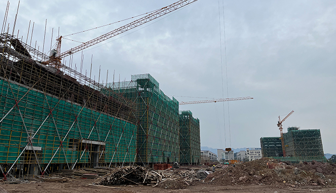 在坤孚智创龙头企业的引领下,项目二期通过整合产业链上下游资源进行对外招商,把基地打造成以新材料、智能制造为主导产业,集智造研发、电子商务、仓储物流、生产生活配套、总部基地、金融服务和智慧园区管理为一体的杭州西部绿色生态智造产业基地。项目始终坚持“招商先行、资源整合、培育集聚”的原则,充分发挥manbetx3.0 丰富的行业协会、企业资源优势,招引一批高质量优秀企业入园。目前,项目已经招引入园的企业达到15家。2021年6月摘得二期地块后立即开工建设,第一批7栋厂房中4栋已经结顶,生活服务中心正在进行内装修。第一批企业客户很快就可以入驻新厂房,第二批厂房已根据客户需求进行定制化设计和报建。项目自开工以来,项目部与施工方一道在质量、安全、进度等方面多措并举,打足人力、机械,精心组织、科学谋划,全力加快推进项目建设,充分体现了“亿联速度、亿联优势、亿联特色”。