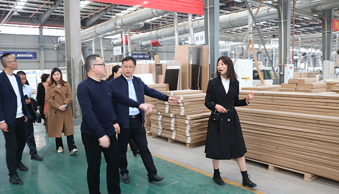 在智能家居生产车间,参观了智能家居生产设备和家具产品生产流程,了解了企业家具生产情况、销售情况和运营情况。