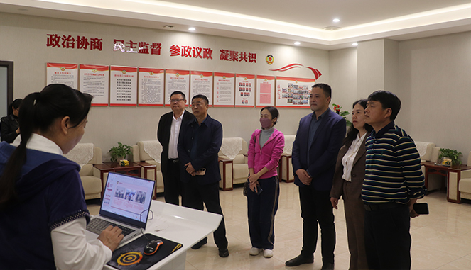 何永明一行详细查看了委员工作室软、硬件设施建设情况,认真查阅了有关文件资料、制度台账和委员履职活动档案等,听取了李瑞霞委员就委员工作室的选址、建设、委员工作等有关情况的详细介绍。