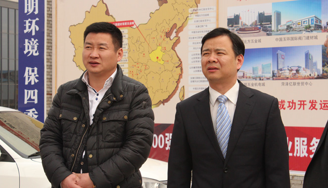 1月19日下午,温州市驻豫招商专员、商会党工委副书记章万真到叶县亿联建材家居五金城项目考察,实地了解项目进展情况,叶县亿联项目董事长、总经理等陪同考察。