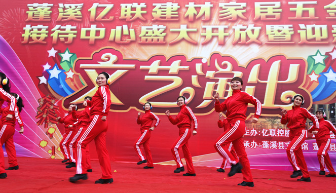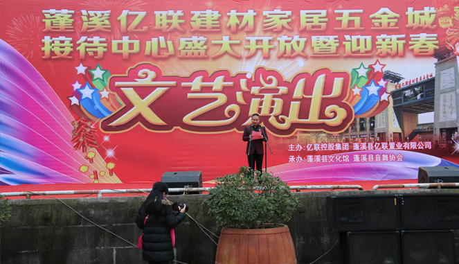 2月1日下午,在欢快激昂的音乐和精彩热烈的锣鼓声中,蓬溪亿联建材家居五金城接待中心正式开放,现场弥漫着浓浓的喜庆气息。政协主席温勉双、副县长杨军、人大副主任肖之平、统战部长曾焱等相关领导以及四川温州商会、商家代表等出席了本次开放仪式。蓬溪亿联置业有限公司还为市民送上一台精彩的新春文艺演出,同时为蓬溪县的贫困学子举行爱心捐赠仪式。