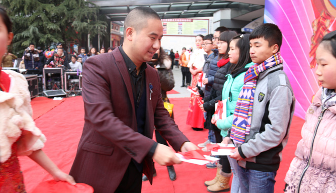 同时,由蓬溪亿联置业有限公司主办的爱心捐赠仪式暨蓬溪县迎新春文艺演出正式开始。精彩的演出吸引了5000多名观众前来观看,现场不时响起热烈的掌声。演出间,董事长夏晔、总经理郑小波还为十余名贫困学子献上爱心。项目总经理郑小波现场表示,manbetx3.0 是敢担当、有社会责任感、有爱心的全国500强民营企业,将一直把献爱心活动持续下去。蓬溪亿联项目的善举获得在场观众的高度赞赏和肯定。