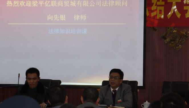合同风险如何防范?企业用工如何规避法律风险?2月7日下午,梁平县亿联商贸城有限公司法律知识培训课精彩开讲,共100余员工参加,并得到该公司法律顾问向先银律师的大力支持。
