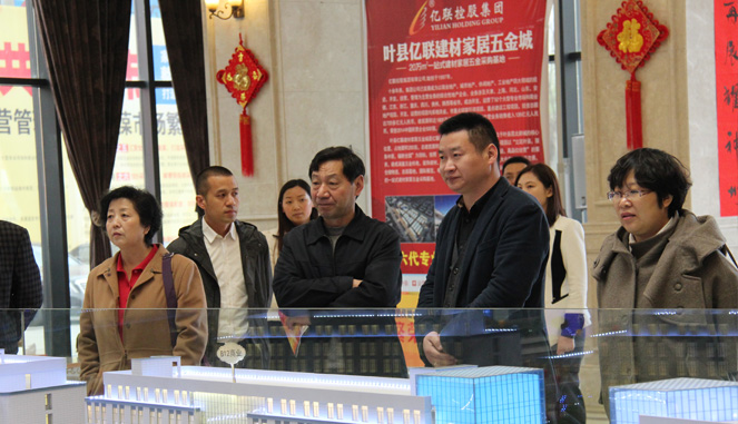 3月26日上午,平顶山市委党校县处级干部学习班学员,在叶县政协主席彭凤领的带领下,到叶县亿联建材家居五金城考察。叶县亿联置业有限公司总经理梅向阳、常务副总经理卢世亮热情接待了考察组一行。