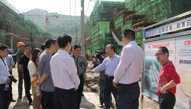 项目总经理林慧忠向县委领导汇报了项目整体规划及工程最新进展情况:自去年10月份正式破土动工以来,项目始终坚持安全施工、高品质施工,以确保建设工作顺利进展。目前,A、B、C区共计20栋已全面封顶,其他工程主体也将在今年8月份前封顶,力争年底完成全部工程建设。张书记等在调研中对现场的文明施工、绿色施工、质量控制、质量保证给予了高度的评价。张书记表示,北部新区以“三年成城”为目标,要求项目建设快马加鞭,务必在工程建设方面高度重视安全问题,保证万无一失,同时狠抓工程质量,高质、高效地完成建设任务。同时张书记还强调要求,相关部门要加快周边市政管网道路、电力设施建设工作步伐,确保市场的开业、运营需求,亿联项目建成后,不仅可以带动区域产业升级、树立新城中心建筑地标,而且有助于提升云阳的城市形象,有效集聚商气人气,为加快构筑大开放、大市场、大流通的现代商贸发展新格局注入新的动力与活力。