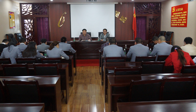 4月15日,梁平县商务局党委委员、副局长周启荣主讲了《依法治国》专题党课,梁平县亿联商贸城有限公司党支部党员、入党积极分子及中层以上管理人员参训。